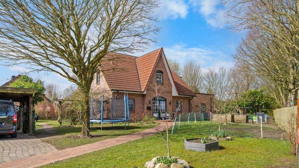 Bereits von außen überzeugt die Immobilie mit ihrem ansprechenden Friesengiebel und ihrer harmonischen Ausstrahlung. Im Inneren erwartet Sie ein durchdachter Grundriss mit viel Platz für Familien, Arbeiten von zu Hause oder die Kombination aus Wohnen und Hobby. Herzstück des Hauses ist der großzügige Wohn- und Essbereich mit offener Küche, der durch seine Offenheit und Wohnlichkeit zum zentralen Treffpunkt des Hauses wird. Ein Kaminofen sorgt hier zusätzlich für eine behagliche Atmosphäre und unterstreicht den besonderen Wohnkomfort.