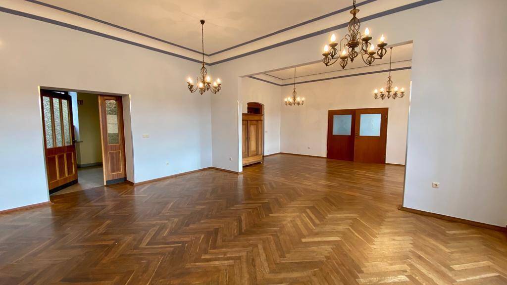 - Tische und Stühle für ca. 60-80 Personen - WC für Damen und Herren - Küche mit Geräten