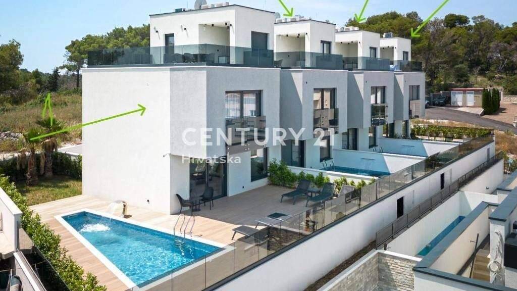 Predstavljamo modernu kucu u nizu, izgradenu 2025. godine, smjestenu na otoku Ciovu u mirnom dijelu sjeverozapadne orijentacije i prekrasnim pogledom na more. Ova nekretnina nudi savrsen spoj suvremenog dizajna i pazljivo odabranih luksuznih detalja, namijenjena svima koji traze kvalitetan zivot u blizini prirode i sunca.