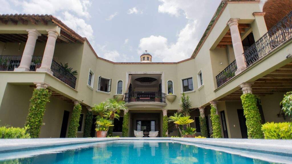 CLOISTERED IN Gated Community of Privada del Sol, on the Cañadita de los Aguacates, This magnificent architectural gem that combines the elegance of the Spanish colonial style with the comfort of contemporary living. Designed by renowned architect Juan Carlos Valdez, it offers privacy, unparalleled views, and a prime location just minutes from Parque Juarez and the Main Garden. Its quiet wooded setting provides an ideal retreat, while its spacious and sophisticated spaces make it a truly exceptional property. Property Features: