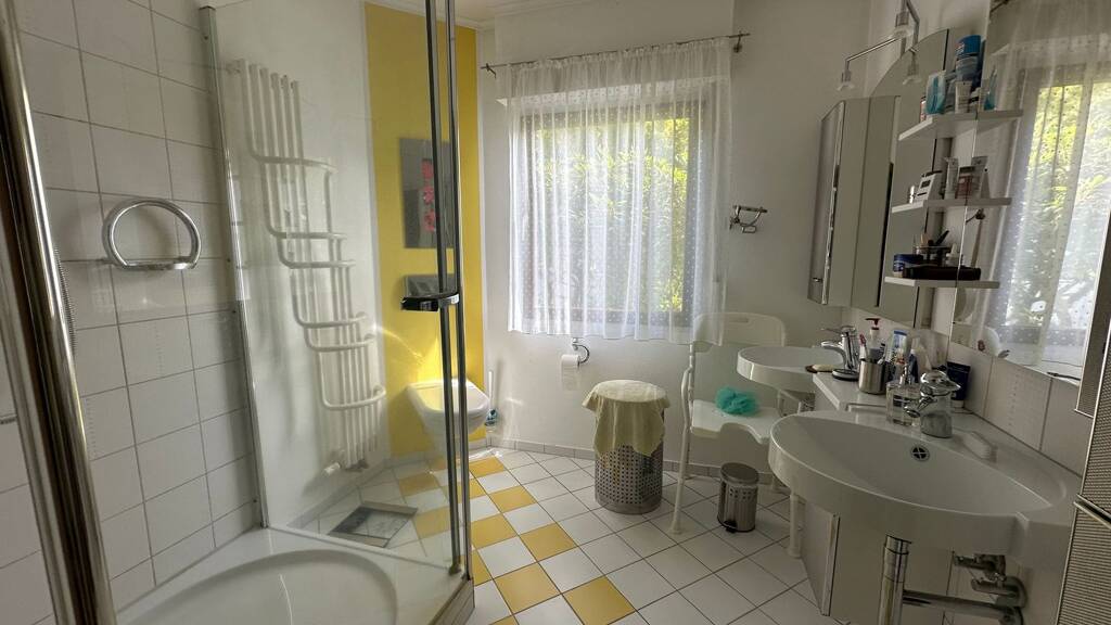 Dieses Fertighaus wurde 1973 errichtet. 1993 wurde es zum Haus mit drei Wohneinheiten umgebaut. 1. Appartement im Gartengeschoss, ca. 80 m² 2. eine 3-Zimmer-Wohnung im Erdgeschoss (barrierefrei) mit ca. 117 m² 3. eine 3-Zimmer-Wohnung im Erdgeschoss (barrierefrei), ca. 101 m² Im Gartengeschoss stehen Ihnen zudem weitere Zimmer zur Verfügung. 1. drei Räume (Wohnräume) und ein Badezimmer (ca. 60 m²) Es besteht die Möglichkeit, diese Fläche für Wohnzwecke umzubauen. 2. Nutzräume: Heizungsraum, Waschraum und Kellerabstellraum. Eine freistehende Doppelgarage, die von zwei Seiten befahrbar ist.