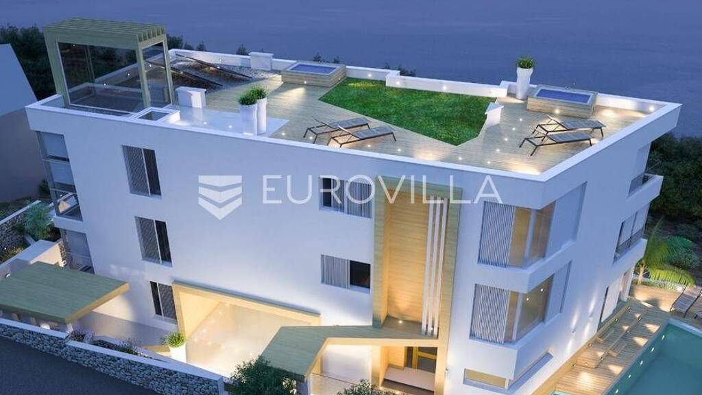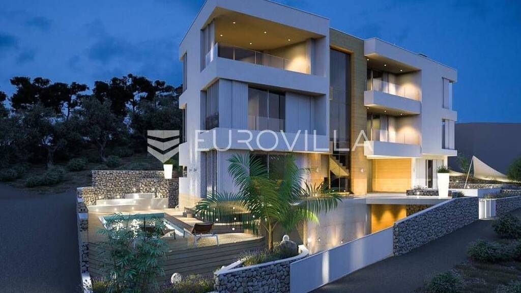 Ciovo, Slatine - prostrana vila s tri odvojene jedinice samo devedeset metara udaljena od prekrasne sljuncane plaze. Na parceli velicine 530 m2 smjestena je ova nekretnina stambene povrsine od cak 579 m2 koja je trenutno u visokoj roh-bau fazi te joj novi vlasnik moze dodati svoj osobni pecat. Proteze se na cetiri etaze - u suterenu je smjestena garaza s osam garaznih mjesta I unutarnjom vezom s ostatkom kuce, a kuca je podijeljena na istocnu I zapadnu stranu.Prizemlje na istocnoj strani se sastoji od dnevnog boravka, blagovaonice i kuhinje kao jednog velikog prostora, te gostinjske kupaonice u blizini glavnog ulaza. Iz dnevnog boravka se izlazi na prostranu terasu ispred i jednu terasu sa strane, koja vodi do vanjskog bazena i suncalista. Prvi kat se sastoji od dvije spavace sobe, svaka sa svojom kupaonicom, dok jedna spavaca soba ima svoj balkon, sa prekrasnim pogledom na more. Na drugom katu je glavna spavaca soba, sa svojom kupaonicom i walk-in garderobom te prostranim balkonom I prekrasnim pogledom.Prizemlje na zapadnoj strani se sastoji od spa sobe sa saunom i unutarnjim bazenom. Na prvom katu smjesten je stan s dvije spavace sobe i kupaonice, kuhinje i dnevnog boravka. Na drugom katu je takoder identican stan 2. ali ce ovaj kat imati izravan pristup krovnoj terasi, odakle ce vlasnici imati panoramski pogled od 360 stupnjeva.Prvotna ideja vlansika bila je sagraditi sebi dom te su u izgradnji koristeni najbolji I najkvalitetniji materijali. Podno grijanje je postavljeno kroz cijelu kucu kao I integrirani sustav grijanja i hladenja. Vanjske terase oblozene su prirodnim kamenom travertinom, prekrasan vanjski rostilj s ljetnom kuhinjom I pergolom.Prilikom dizajna pazilo se na najmanji detalje te je sacuvana veza izmedu moderne arhitekture I dalmatinskog nacina zivota...Kuca je na jako mirnoj lokaciji, u prirodi te udaljena od splitskog aerodroma petnaestak minuta voznje...Novi vlasnik uz kucu moze kupiti i zemljiste uz plazu od istog vlasnika i sadrzajno ga pripojiti vili.Vise informacija na upit.... Vise na eurovilla.hr, ID: 405027