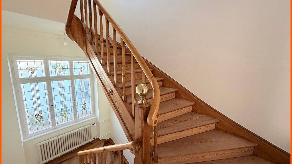 Diese denkmalgeschütze Villa wurde 1912/1913 aufwendig errichtet und von dem Architekt Jean Rheinstädter geplant. Sie verfügt über 3 abgeschlossene Wohnungen. In der ersten Etage erwarten Sie 3 Zimmer, Balkon, eine neue Einbauküche, ein Bad und ein Gäste-WC.