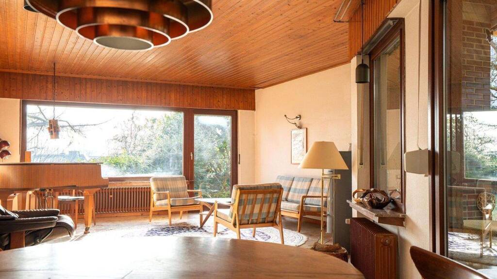 Herzstück ist die großzügige, lichtdurchflutete Erdgeschoßwohnung mit direktem Zugang zu zwei Terrassen und einem idyllisch angelegten Garten mit Teich. Über eine helle Diele mit Gäste-WC erschließt sich der gemütliche Wohn-Ess-Bereich. Ergänzt wird das Raumangebot durch eine separate Küche sowie drei flexibel nutzbare Schlaf-, Kinder- oder Arbeitszimmer und ein Tageslichtbad. Es steht ein großer Hauswirtschaftsraum und Keller mit Schutzraum zur Verfügung.