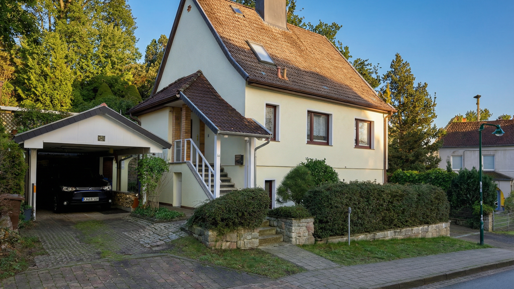 Dieses gepflegte Wohnhaus aus dem Jahr 1989 befindet sich in einer ruhigen, gleichzeitig sehr zentralen Wohnlage von Bergen auf Rügen und bietet vielfältige Nutzungsmöglichkeiten für Familien, Mehrgenerationenwohnen oder zur Kombination aus Wohnen und Vermieten. Die Immobilie wurde in massiver Bauweise errichtet und verfügt über eine Gesamtwohnfläche von rund 165 m² auf einem etwa 485 m² großen Grundstück. Sie ist in eine großzügige Haupteinheit sowie eine vollwertige Einliegerwohnung untergliedert. Die Hauptwohnung mit einer Fläche von ca. 114 m² erreichen Sie über eine kleine Treppe. Sie erstreckt sich über zwei Ebenen und umfasst insgesamt fünf Zimmer. Die im Erdgeschoss gelegene Einliegerwohnung verfügt über drei Zimmer, eine Küche und ein Bad. Sie eröffnet zahlreiche Nutzungsmöglichkeiten - von der Erweiterung der Hauptwohnung über die Nutzung als Ferienwohnung bis hin zur unabhängigen Wohnlösung für Familienmitglieder. Das Grundstück ist überschaubar und pflegeleicht angelegt - ideal für alle, die wenig Aufwand im Außenbereich wünschen. Neben einer Garage, einem Carport und zwei Außenstellplätzen gehören eine Terrasse, ein Balkon sowie kleinere Nebengelasse auf dem Hanggrundstück zur Ausstattung.