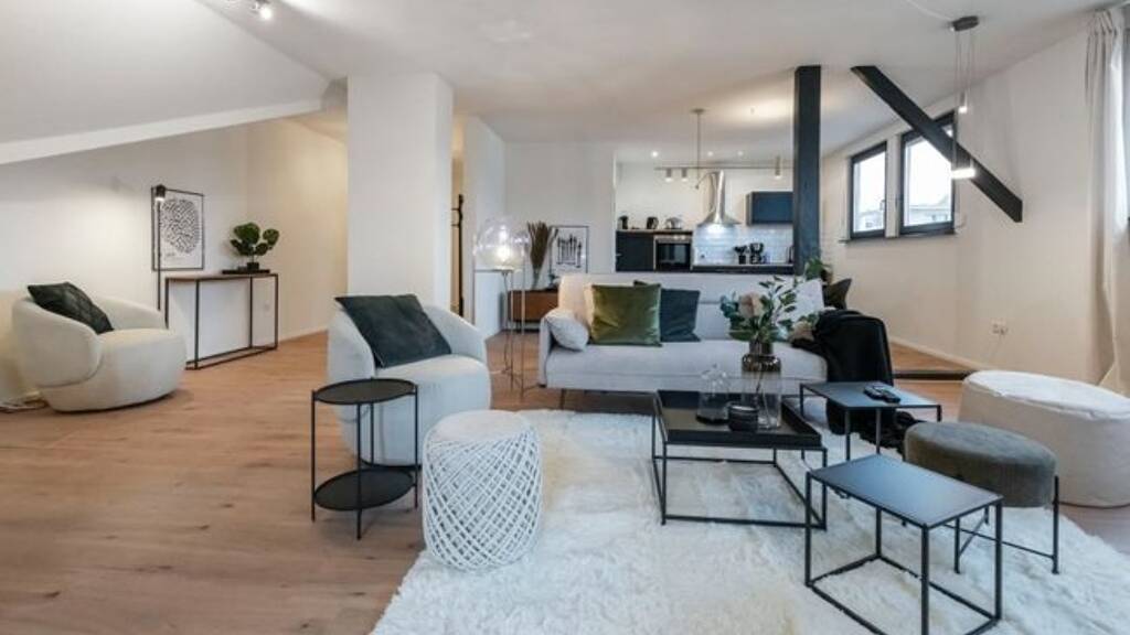 Diese Dachgeschosswohnung wurde, eingebettet in eine kleine Eigentümergemeinschaft, vollständig kernsaniert und überzeugt durch modernste Gestaltung und einen durchdachten Grundriss. Der großzügige, offene Wohn- und Essbereich mit integrierter Küche bildet das Herzstück der Wohnung. Hier erwarten Sie nicht nur hochwertige Materialien, sondern auch ein praktischer Hauswirtschaftsraum. Die charmante Loggia lädt zu entspannten Momenten im Freien ein, während das Gäste-WC zusätzlichen Komfort bietet. Die Wohnung bezaubert durch den gelungenen Kontrast aus moderner Ausstattung und den authentischen, sichtbaren Holzbalken, die ihr eine gemütliche Atmosphäre verleihen. Das Tageslichtbad ist mit einer Badewanne und einer Dusche ausgestattet. Die Schlafzimmer, unterschiedlich in Größe und Gestaltung, bieten vielfältige Nutzungsmöglichkeiten. Besonders hervorzuheben ist das Elternschlafzimmer, welches durch einen abgeteilten Ankleidebereich besticht. Ein eigener Außenstellplatz (á € 10.000,--) rundet dieses Angebot ab.