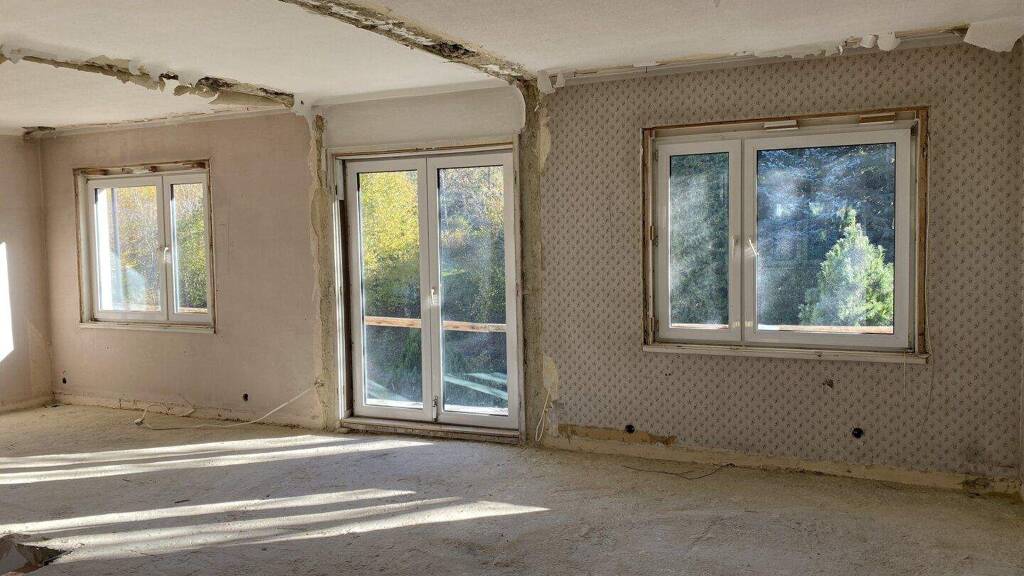 Auf dem Grundstück befindet sich derzeit ein entkerntes Bestandsgebäude. Fenster, Türen und die Dachhaut sind noch vorhanden, sodass das Haus trocken ist und ein solider Ausgangspunkt für eine Sanierung oder einen Neubau besteht.
