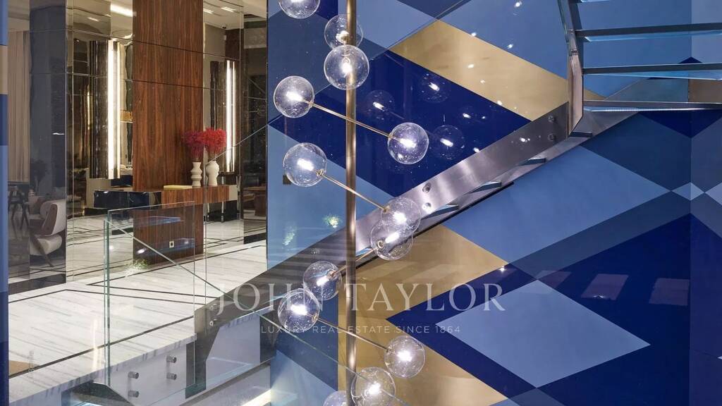 Sobald Sie durch die Türen treten, werden Sie von einem atemberaubenden visuellen Spektakel begrüßt: eine majestätische Glastreppe, die sich über fünf Stockwerke erstreckt, während ein imposanter, zehn Meter hoher Kronleuchter sofort alle Blicke auf sich zieht. Die Exklusivität dieses Hauses setzt sich fort mit einem in den Pool eingelassenen Aquarium, zwei Wasserfällen und einem außergewöhnlichen Spa, das inmitten üppiger Gärten eingebettet ist. Mit einer Wohnfläche von 1.100 Quadratmetern auf einem 4.500 Quadratmeter großen Grundstück bietet dieses Anwesen ein unvergleichliches Luxuserlebnis.