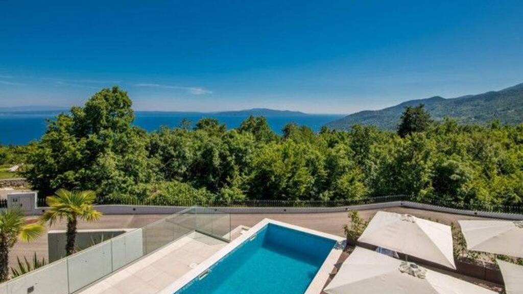 Energieausweis: ZU DIESER IMMOBILIE LIEGT DERZEIT NOCH KEIN ENERGIEAUSWEIS VOR. IN VORBEREITUNG. Wir präsentieren Ihnen eine neu gebaute und komplett eingerichtete Villa in einem geschlossenen Komplex in der Nähe von Opatija und dem Naturpark Ucka. Gebaut aus hochwertigsten Materialien und ausgestattet mit hochwertigster Ausstattung, wird es Sie auch mit seinem wunderschönen Blick auf die Kvarner-Bucht verzaubern.Für den Bau wurden das STO-Fassadensystem, Vicona-Aluminiumfassadensysteme, Schuco-Türen, das hocheffiziente automatisierte Luftkühl- und Heizsystem von Bosch, Klimaanlagen, Heiz- und Kühlsysteme sowie Fußbodenheizungen und Wärmepumpen verwendet.Auf insgesamt drei Etagen (Keller, Erdgeschoss und Obergeschoss) stehen 247 m² Wohnfläche zur Verfügung. Im Keller gibt es einen Fitnessraum, einen Heizraum, einen Pool-Maschinenraum, einen Abstellraum und eine Garage für drei Autos. Wenn Sie ins Erdgeschoss gehen, werden Sie von einem geräumigen Wohnzimmer mit großen Glaswänden, einer Küche mit Esszimmer und einer Toilette begrüßt und im ersten Stock befinden sich drei weitere Schlafzimmer mit eigenen Badezimmern. Eines der Zimmer verfügt über einen Balkon, auf dem Sie entspannen und den schönen, beruhigenden Blick auf das Meer genießen können. Auf dem 550 m² großen Grundstück, auf dem sich diese schöne Villa befindet, gibt es einen Garten und einen 30 m² großen Swimmingpool mit Strand sowie zwei weitere Außenparkplätze.Der Pool wird durch eine Wärmepumpe beheizt, wodurch die Nutzung um weitere vier Monate im Jahr verlängert wird.Die Luftlinie vom Meer beträgt nur 1500 m Interesse? Bitte senden Sie uns ein VOLLSTÄNDIG augefülltes Kontaktformular zu, Sie erhalten dann umgehend ein ausführliches Exposé. ACHTUNG MAKLER: Wir freuen uns auf eine Zusammenarbeit. Alle Angaben stammen vom Verkäufer der Immobilie. Ohne Gewähr! blueHOMES AG ...die schönsten Häuser Europas...