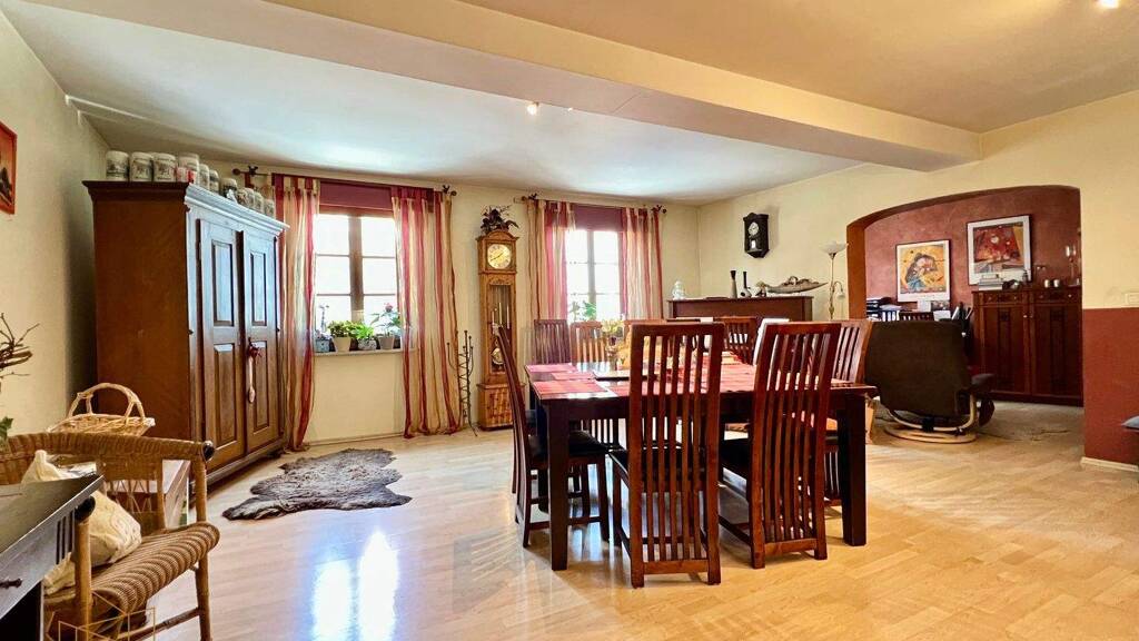 Im ersten Obergeschoss befindet sich eine gepflegte Wohneinheit mit ca. 187 m² Wohnfläche, verteilt auf mehrere helle und großzügige Räume. Die Einheit präsentiert sich in einem gepflegten Zustand und wurde zuletzt im Jahr 2007 modernisiert. Für angenehme Wohnatmosphäre sorgt neben moderner Lärmschutzverglasung auch die Beheizung des Gebäudes: Die Wärmeversorgung erfolgt über Nachtspeicheröfen, im Wohn- und Esszimmer sorgt zusätzlich ein gemütlicher Schwedenofen für wohlige Stunden und ein behagliches Wohngefühl.