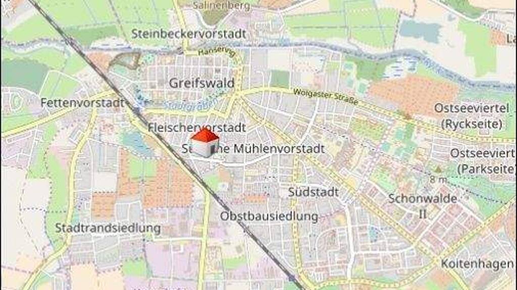Einen Parkplatz können Sie über eine Anwohnerkarte bei der Hansestadt Greifswald anmieten.