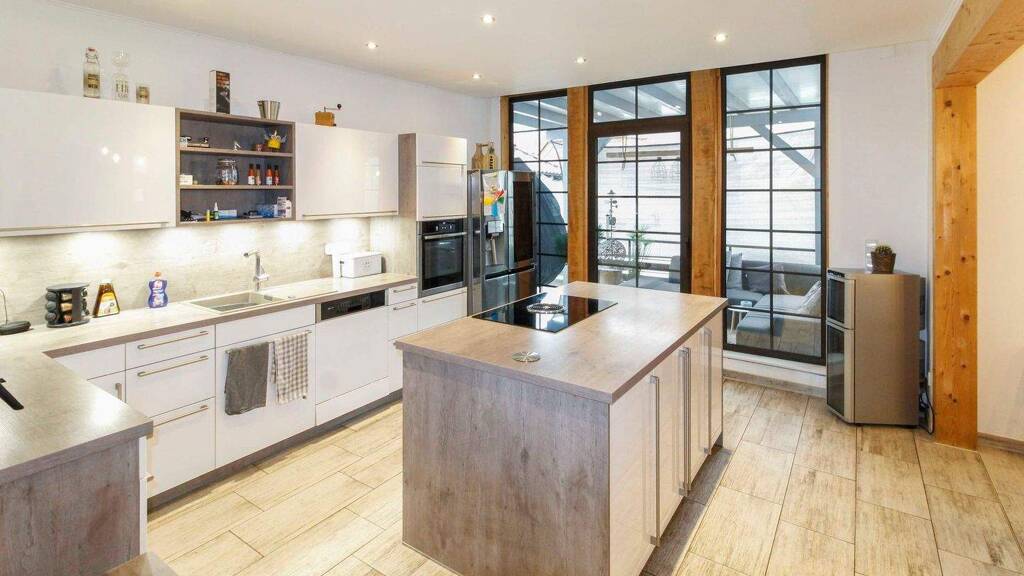 An Wohnfläche stehen Ihnen ca. 200 m² verteilt auf 2 Etagen und 6 Zimmer zur Verfügung. Als familienfreundlich erweisen sich 3 Badezimmer mit Dusche und Badewanne sowie ein Gäste-WC. Zu verzeichnen hat die attraktive Immobilie zahlreiche Highlights, die es hervorzuheben gilt: So wissen bspw. eine offene Einbauküche mit Markengeräten, ein Kaminofen, ein Holzdielenboden sowie einen Vollkeller in bester Qualität zu überzeugen. Präsentiert werden im Innern der Immobilie komfortable Extras wie die bodentiefen Fenster, der tolle Ausblick aufs Wasser oder die tageslichthellen Räumlichkeiten.