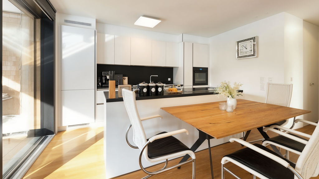 86 m² Wohnfläche | 20 m² Terrasse | 6 m² Keller attraktiver Wohn-Koch-Essbereich hochwertige Einbauküche mit Bora-Herd Schlafzimmer mit optimaler Ost-Ausrichtung vollausgestattetes Badezimmer mit bodengleicher Dusche, Wanner und Fenster Praktischer, gefliester Eingangsbereich mit Platz für große Garderobe bemerkenswerte, überdachte Terrasse mit Südausrichtung moderner Echtholzparkett und Fußbodenheizung und -Kühlung Kleinwohnanlage mit nur 7 Parteien im Gebäude Personenaufzug vorhanden Dreifach-verglaste Holz-Alu-Fenster und ökologische Erdwärmepumpe Lebensmittelladen und Bäckerei in wenigen Gehminuten erreichbar Stadtzentrum von Dornbirn zirka 10 Minuten mit dem Fahrrad entfernt Autobahnvollanbindung nur 10 Autominuten