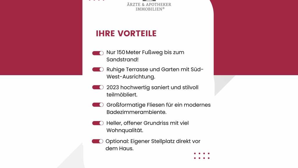 - Fußläufig nur ca. 150 Meter bis zum Strand - Wohnen, wo andere Urlaub machen