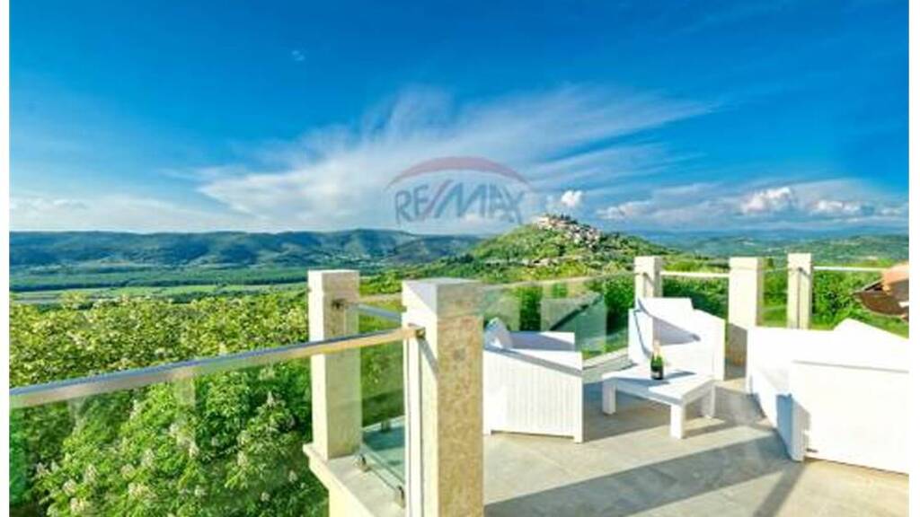 Umgeben von Weinbergen und Hügeln, bei Motovun liegt diese neue Villa. Die leichte Hanglage bietet einen traumhaften Blick auf die sanfte Hügellandschaft und das mittelalterliche Städtchen Motovun.