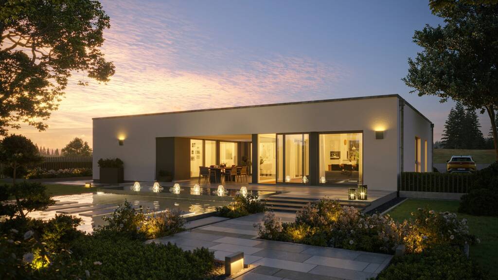 Das Haus ist individuell planbar und kann in verschiedenen Dachformen (Sattel-, Walm- oder Flachdach) ausgeführt werden. Erweiterungsoptionen ermöglichen eine Anpassung an unterschiedliche Lebenssituationen.