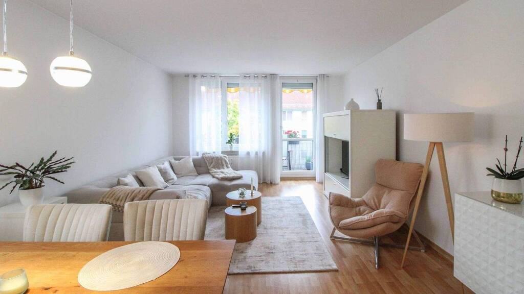 Im 2. Obergeschoss eines 2-geschossigen Mehrfamilienhauses erstreckt sich die Wohnung auf eine Gesamtwohnfläche von etwa 71,5 m². Mit gutgeschnittenen 3 Zimmern , darunter 2 Schlafzimmer, bietet die Eigentumswohnung Raum für Paare oder kleine Familien. Daneben gehört ein Badezimmer mit Badewanne zum Grundriss. Geboten werden dank der soliden Ausstattung außerdem Holzparkettböden und viele weitere attraktive Details.