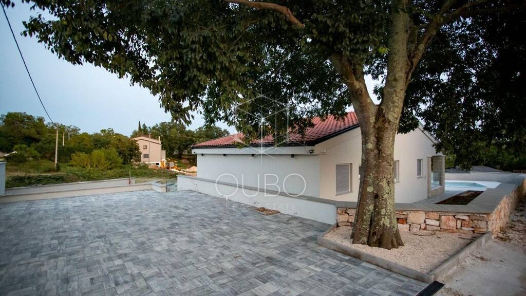 In einer ruhigen und angenehmen Umgebung, nur wenige Minuten von einer der schönsten Städte der Adria - Rovinj - entfernt, befindet sich dieses wunderschöne moderne einstöckige Fertighaus, das die perfekte Kombination aus zeitgemäßem Design, Funktionalität und komfortablem Wohnen inmitten der Natur darstellt. Die Immobilie bietet eine ideale Balance zwischen Privatsphäre und der Nähe zu allen Annehmlichkeiten, die Rovinj zu einem der begehrtesten Orte in Istrien machen.