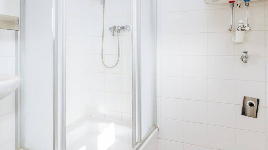 Das moderne Badezimmer ist mit einer Dusche und einem Spiegelschrank ausgestattet - ideal für entspannte Wohlfühlmomente. Die separate Toilette sorgt für zusätzlichen Komfort.