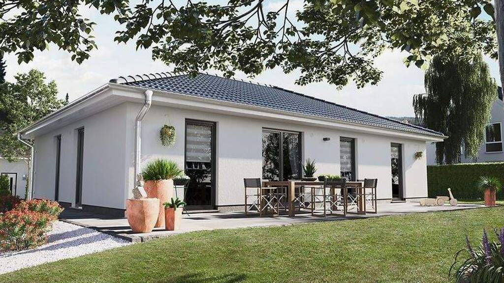 Egal ob Jung oder Alt.... ... hier spielt sich alles auf einer Wohnebene ab. Für eine Familie mit zwei Kindern ist der Bungalow 110 ebenso ein ideales Zuhause, wie für eine Familie, wo die Kinder schon aus dem Haus sind. Er bietet ein gemütliches Wohnzimmer mit Essbereich, ein geräumiges Schlafzimmer und zwei weitere Zimmer. Alle Räume sind dank großer Fenster hell und freundlich. Mit quasi einem Schritt sind Sie mit Ihren Liebsten im Garten und können die Sommerzeit bei einem Grillabend genießen.