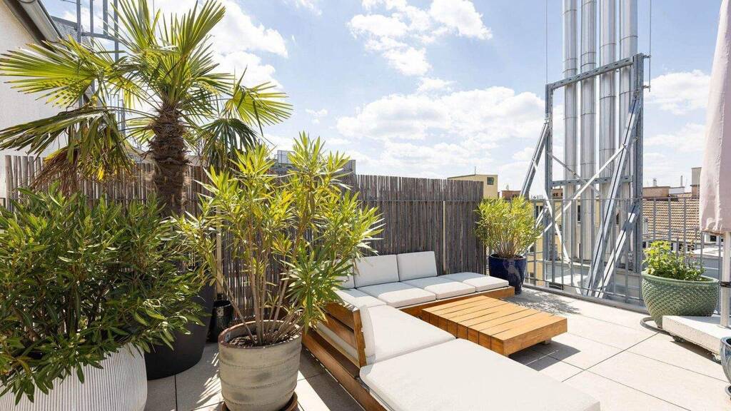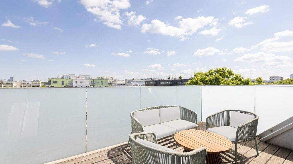 Herrliche Abendstimmung inkl. Blick auf die bunten Lichter des nahen Praters, den Kahlenberg und den Stephansdom genießt man auf der schön gestaltbaren, Süd-West-seitigen Terrasse. Entweder bei einem gemütlichen Abend mit seinen Liebsten oder bei einer feinen Grill-Session mit Freunden.