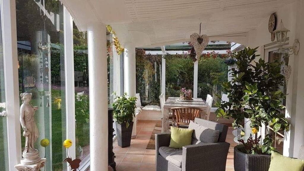 Dieses großzügige, sehr gepflegte Einfamilienhaus mit Einliegerwohnung präsentiert sich in idyllischer Lage direkt am Waldrand. Die Einliegerwohnung wird derzeit als Büro beziehungsweise Praxis genutzt und eröffnet vielseitige Nutzungsmöglichkeiten. Die moderne Ausstattung des Hauses verbindet zeitgemäßen Wohnkomfort mit einem hohen Maß an Behaglichkeit. Großzügige Treppenhäuser ermöglichen eine komfortable Nutzung und sind ideal für den Einbau eines Treppenlifts geeignet. Große Fensterflächen eröffnen einen wunderschönen Blick ins Grüne und schaffen eine helle, freundliche Wohnatmosphäre. Der Wohnbereich wird durch einen Kamin ergänzt, der an kühleren Tagen für wohlige Wärme sorgt. Eine hochwertige Einbauküche sowie ein Wintergarten erweitern den Wohnraum und bieten zu jeder Jahreszeit einen besonderen Rückzugsort mit Blick in den Garten. Der großzügige Garten grenzt direkt an den Wald und lädt zum Entspannen und Verweilen ein. Der Pool mit besonderer Natursteinumrandung und dekorative Steinmauer bietet Erfrischung an heißen Sommertagen. Eine Garage sowie zwei Außenstellplätze stehen für Ihre Fahrzeuge zur Verfügung. Beheizt wird die Immobilie über eine neue Viessmann Gas-Zentralheizung aus dem Jahr 2025. Auf Wunsch können Möbel, teilweise maßgefertigt, übernommen werden.