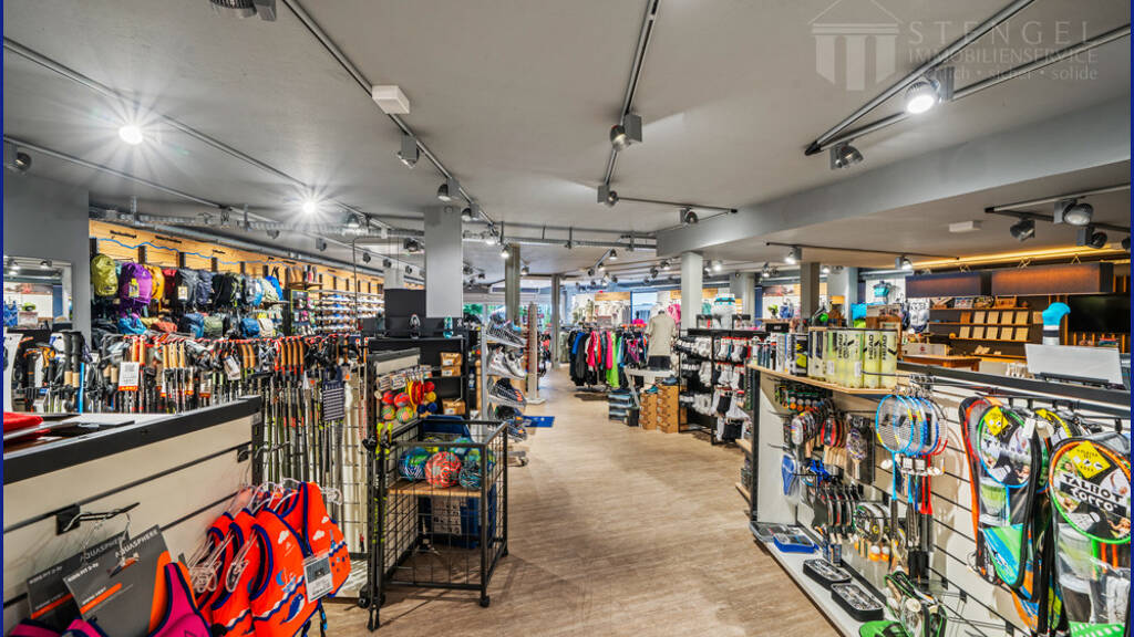Flächenaufteilung: - Erdgeschoss (ca. 350 m²) - Großzügige Verkaufsfläche mit Umkleidekabinen - Sozialraum mit Küche - Separater Vorraum mit Zugang zum Lastenaufzug ins Obergeschoss - Anlieferungsfläche für Waren