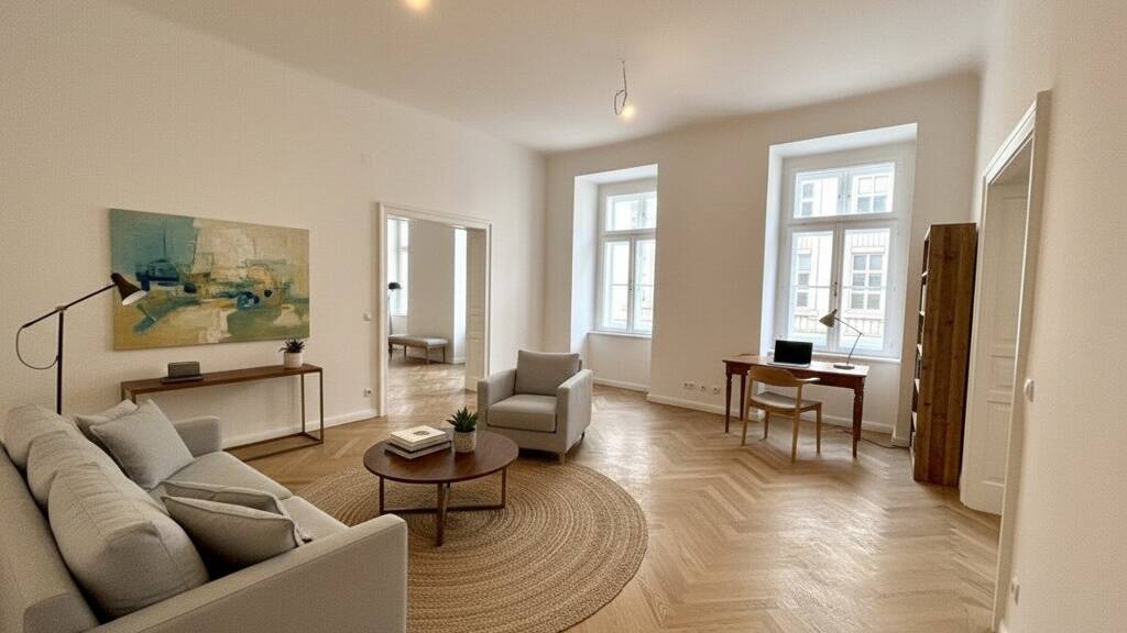 Zum Verkauf gelangt diese _wunderschöne und aufwendig sanierte 5-Zimmer Altbauwohnung_ direkt auf der _Währinger Straße, nahe Schottentor und Votivkirche _in 1090 Wien.