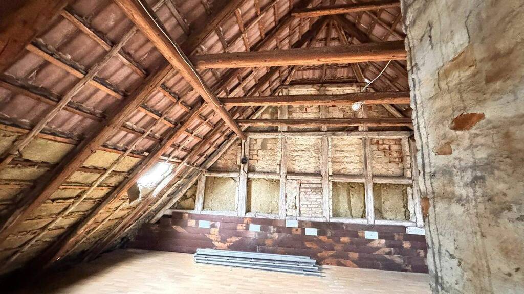 Das jetzige Zweifamilienhaus diente früher als Dorfschule und trägt bis heute diese besondere Geschichte in sich. Hohe Räume, dicke Lehmaußenwände und ein solides Fundament, schaffen eine gute Grundlage für eine umfassende Sanierung.