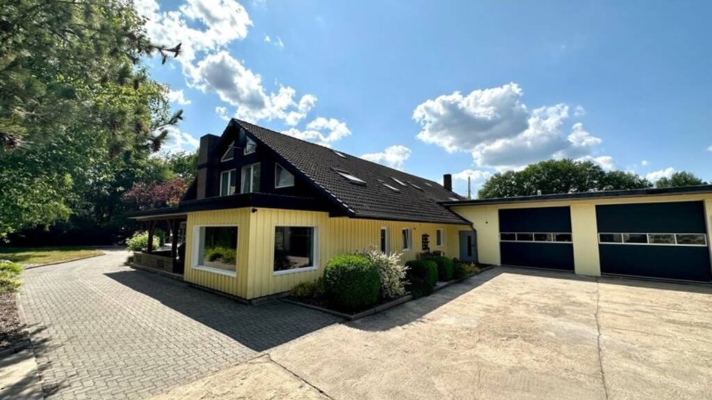 Dazu kommt das angrenzende Werkstattgebäude (ca. 234 m²) sowie die Garagen (ca. 212 m²) mit 3 großzügigen Rolltoren (Einfahrtshöhe ca. 3,30 m, 2 x Doppelgarage, 1 x Einzelstellplatz), welche sich ideal als Kfz-/Oldtimer-Werkstatt o.ä. eigenen, da bereits zwei Hebebühnen und eine Grube mit diversen Lagerräumen und weiteren Garagen vorhanden sind.
