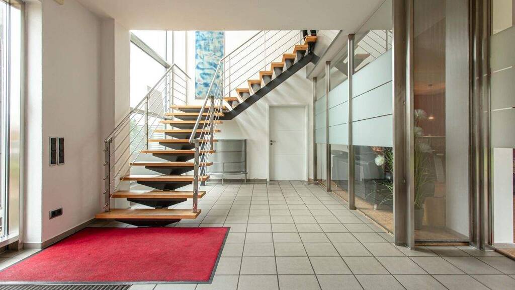 Die Büroeinheit eignet sich ideal für kleine Unternehmen, Selbstständige oder Projektteams, die einen professionellen und gut angebundenen Arbeitsplatz in einem repräsentativen Gewerbeumfeld suchen. Neben den eigenen Büroräumen stehen gemeinschaftlich nutzbare Einrichtungen wie Kunden-WC, ein Personalraum mit Küche sowie ein Serverraum zur Verfügung, die den Arbeitsalltag komfortabel und effizient unterstützen.