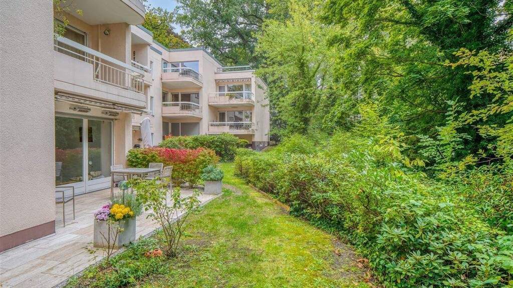 Fitnessgeräten, Sauna mit Tauchbecken, und Solarium, der allen Bewohnern zur Verfügung steht. Neben dem eignene Kellerverschlag kann ein Waschkeller mit Waschmaschine genutzt werrden. Übernachtungsgästen steht eine komplette Gästewohnung im Objekt zur Verfügung. Ein großzügiger Carport ergänzt das komplette Komfortangebot der Liegenschaft, In der Koenigsallee befinden sich viele Botschafts-Residenzen.