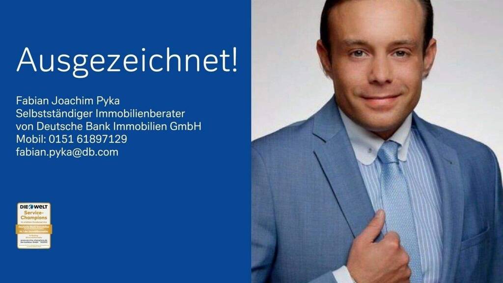 Rechtlicher Hinweis auf den Urheber des Exposés Fabian Pyka Selbstständiger Immobilienberater Kampstraße 35-37 44137 Dortmund E-Mail: fabian.pyka@db.com Telefon: 0151 61897129