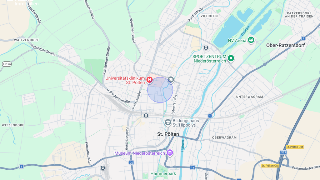 Die Lage dieser Wohnung zählt zu den gefragtesten Wohngegenden St. Pöltens: