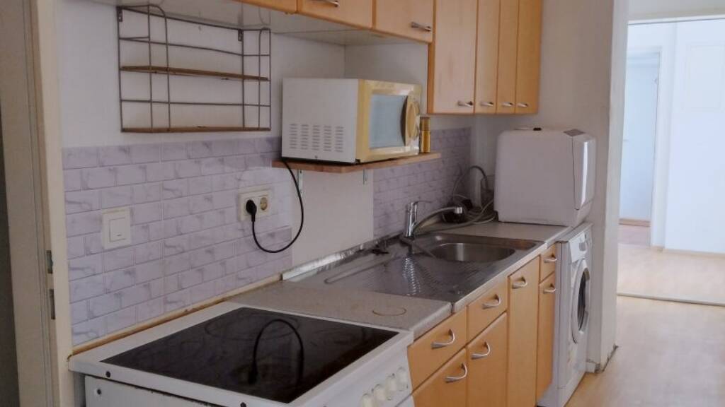 Auf einer Fläche von rund 56,00 m² findet man hier eine Küche, ein Esszimmer, ein Bad mit Dusche und WC sowie einem kleinen Vorraum welcher zu zwei weiteren Zimmern führt.