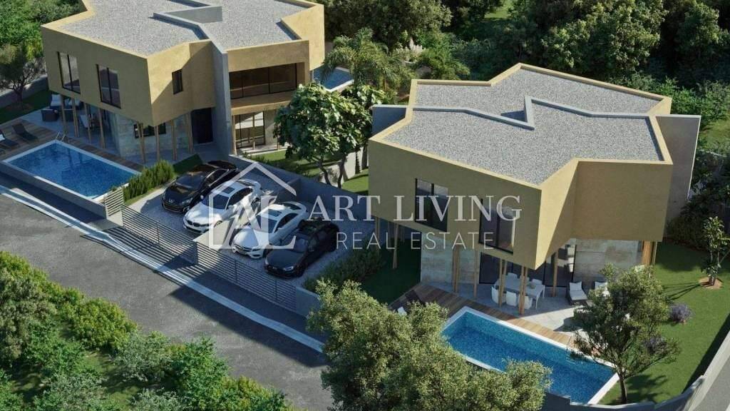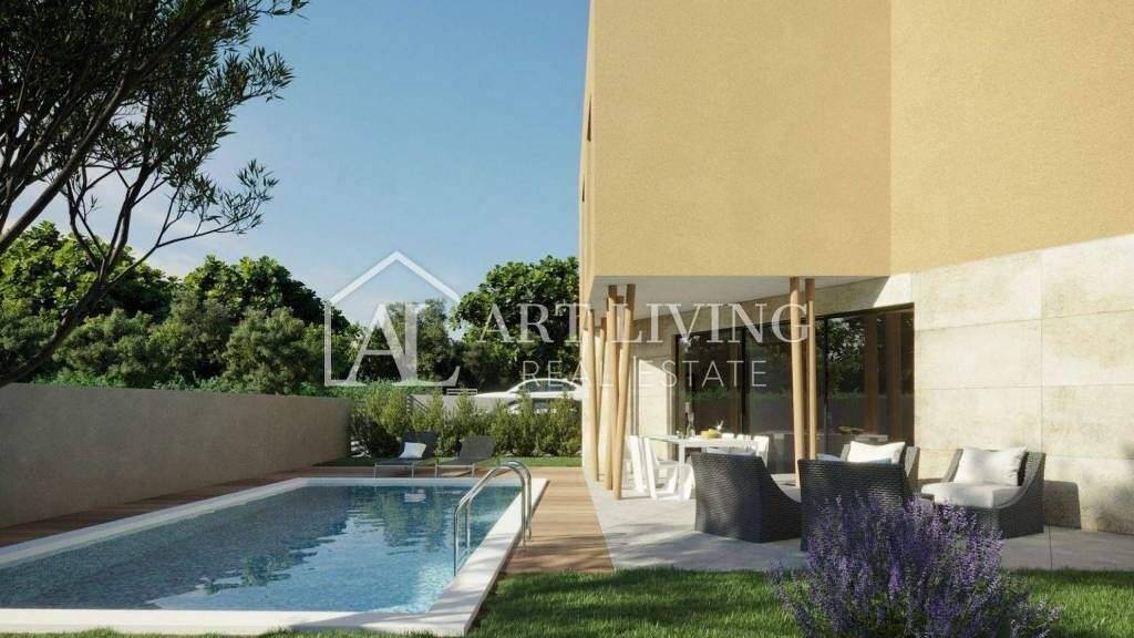 Luxuriöse Doppelhaushälfte mit Pool in einem Neubau moderner Architektur zu verkaufen, 7 km vom Meer und 9 km vom Grenzübergang zu Slowenien und dem Flughafen (Portoroz) entfernt.