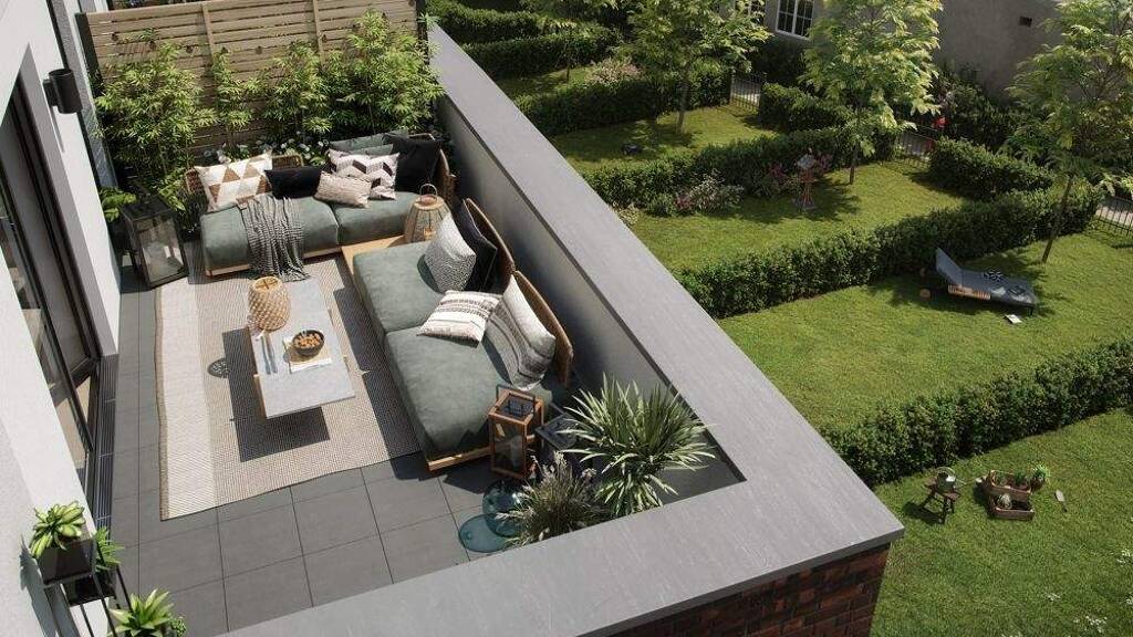 Im Erdgeschoss genießen Sie Ihre eigene Terrasse - Platz für Kräuterbeet, Liegestuhl oder auch die eigene Eistonne. Wer lieber in Ruhe entspannt, findet auf der Dachterrasse einen privaten Rückzugsort mit Weitblick zum Sonnenuntergang.