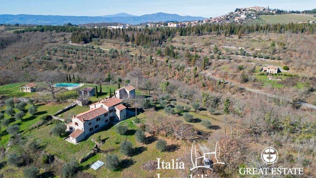 Das Landhaus befindet sich in der Gemeinde Montegabbione, in einer weitläufigen, unberührten Grünzone an der Grenze zwischen Umbrien und der Toskana. Die Immobilie liegt nur wenige Kilometer von Fabro, Città della Pieve und Castiglione del Lago entfernt. Eingebettet in Wälder, Weinberge und Olivenhaine mit sehr stimmungsvollen Ausblicken, ist es schnell erreichbar: etwa 2 Kilometer vom historischen Zentrum der Gemeinde entfernt, mit einem circa 50 Meter langen Schotterweg zum Eingang. Die Autobahnausfahrt Fabro liegt 10 Kilometer entfernt; die Lage ist ideal, da sie auf halbem Weg zwischen Rom (150 km) und Florenz (120 km) an der Autobahn A1 (E35) liegt.