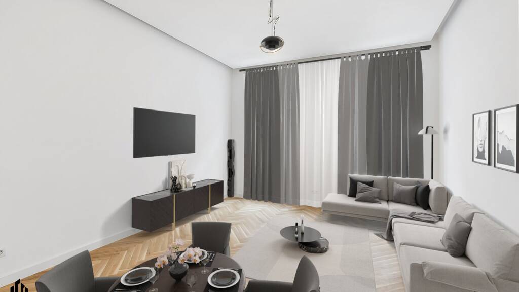 Es wird darauf hingewiesen, dass die ersten drei Fotos virtuell gestaged sind! Die Wohnung ist nicht möbliert; die Einrichtung dient als Beispiel, um ein Gefühl dafür zu erlangen, wie man die Räume gestalten könnte.