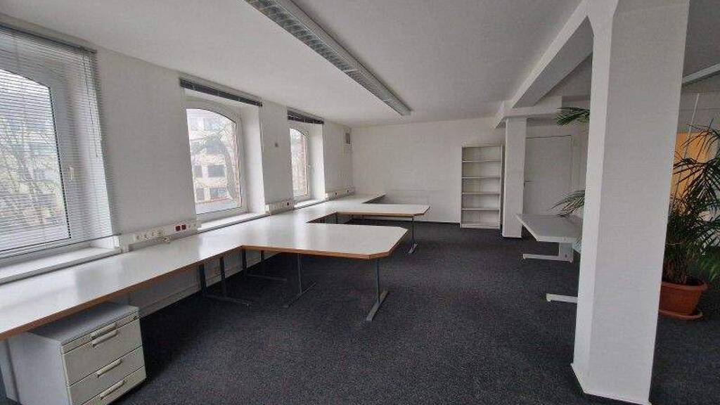 Zu vermieten steht eine gesamte Büroetage im 1. OG mit mehreren Büroräumen, einem Aufenthalts-/Personalraum sowie WCs. Das 1. OG ist bequem über ein Treppenhaus erreichbar. Außerdem stehen bis zu 30 PKW-Stellplätze auf dem großen Parkplatz direkt hinter dem Gebäude zur Verfügung. Die Büroräume können teilmöbliert angemietet werden. Die vorhandenen Möbel stehen kostenlos zur Verfügung.