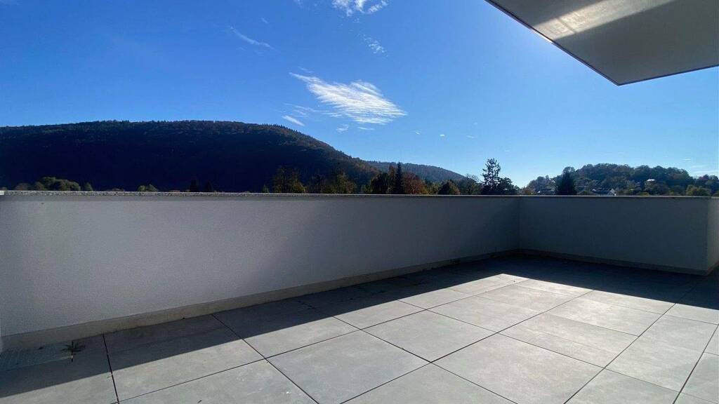 Ein modernes Penthouse mit großzügiger Terrasse und weitem Blick.