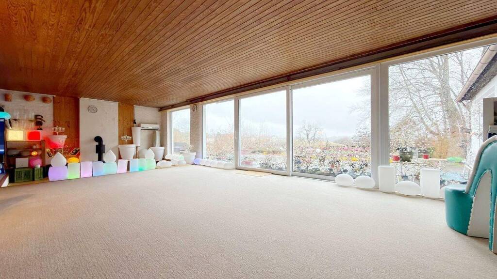 Die Immobilie verfügt über ca. 350 m² Wohnfläche mit insgesamt 10 Zimmern. Zusätzlich steht weitere Nutzfläche zur Verfügung. Mittelpunkt des Hauses ist das große Wohnzimmer mit abgesenktem Wohnbereich. Große Fenster sorgen für viel Tageslicht und einen schönen Blick ins Grüne.