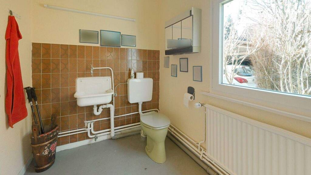 Die Fassade des Hauses wurde bereits vor längerer Zeit mit einer Dämmung versehen. Insgesamt präsentiert sich die Immobilie in einem gepflegten Zustand, auch wenn Renovierungs- und Modernisierungsmaßnahmen einzuplanen sind.