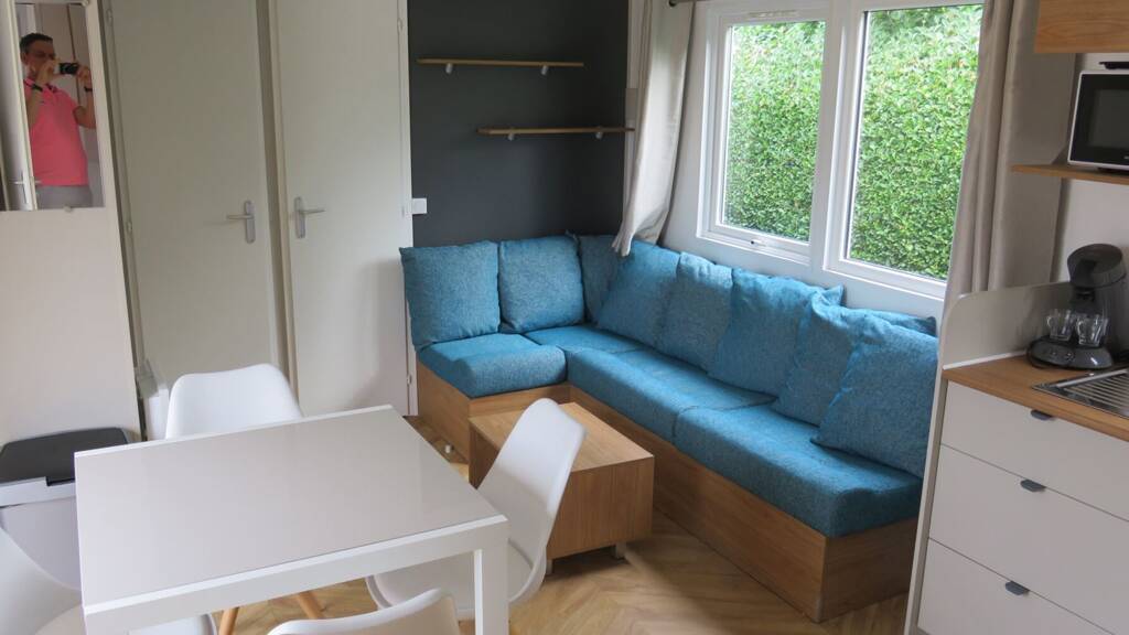 Wohnzimmer - Ein ausziehbarer Esstisch mit 4 Esszimmerstühlen - TV und WLAN - Elektrische Heizung - Kühlung durch einen Lüfter