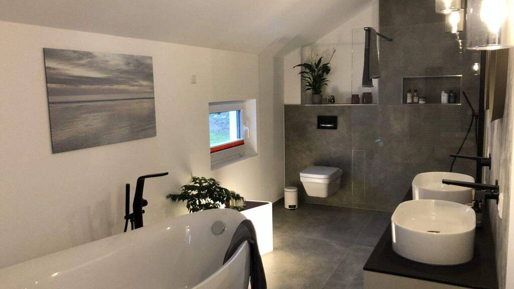 Neben den Leistungen der "technikfertigen" Ausbaustufe beinhaltet diese Option die Verlegung von Boden- und Wandfliesen, die Installation von Innentüren und Türzargen, Innenfensterbänken sowie aller sanitären Einrichtungen. Sie haben die Möglichkeit, Ihre kreative Seite auszuleben und Ihr Haus nach Ihren individuellen Vorstellungen zu gestalten. Malerarbeiten und Fußbodenverlegung können Sie selbst übernehmen oder mit qualifizierten Fachleuten zusammenarbeiten. Mit dieser Option können Sie Geld sparen und dennoch Ihre persönliche Note einbringen.