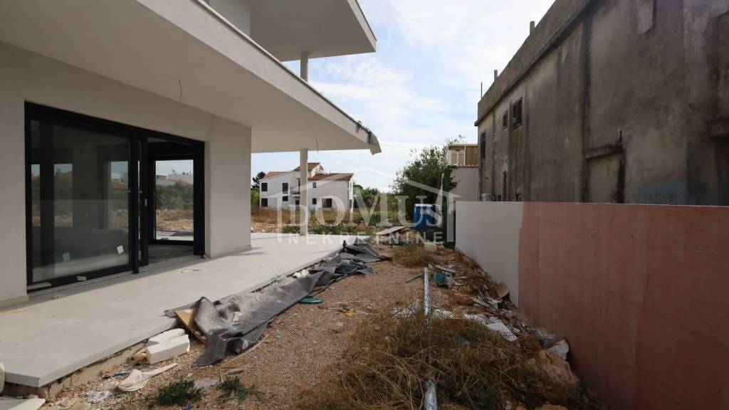 Tribunj, Neubau, 550 m vom Strand entfernt, Wohnung mit der Bezeichnung S1 mit 101,62 m² Nutzfläche, dazu gehört auch ein Garten von 121,55 m². Die Wohnung befindet sich im Erdgeschoss eines neu errichteten Mehrfamilienhauses mit einer Fläche von 82,29 m2, bestehend aus Flur, Bad, WC, Waschküche, zwei Schlafzimmern, Küche mit Esszimmer und Wohnzimmer als Ganzes mit Zugang zu einer großen überdachten Terrasse von 28,66 m² mit Zugang zum angrenzenden Garten von 121,55 m². Zur Wohnung gehört ein Außenstellplatz. Die Immobilie wird mit hochwertigen Materialien wie Keramik, Parkett, Sanitärkeramik und Schreinerarbeiten ausgestattet. Fußbodenheizung in der gesamten Wohnung, Klimaanlage in allen Zimmern und im Wohnzimmer. Die Zimmer verfügen über Parkettböden und der Rest der Wohnung über Keramik, PVC-Tischlerei, elektrische Rollläden und Moskitonetze. Fassade mit 10 cm starkem Polystyrol. Die Entfernung zum Meer und Strand beträgt 550 m und zum Stadtzentrum 400 m. Das Gebäude befindet sich derzeit im Bau und die voraussichtliche Fertigstellung ist das Frühjahr 2026.