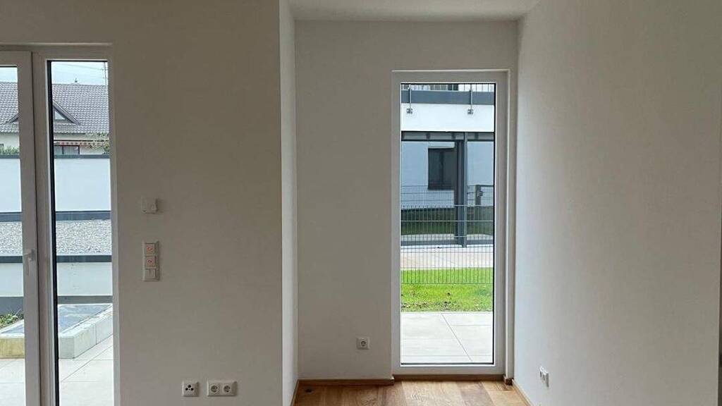 Diese moderne Erdgeschosswohnung überzeugt durch ihre durchdachte Raumaufteilung und den Komfort eines eigenen, kleinen Gartens – perfekt für entspannte Abende im Freien.