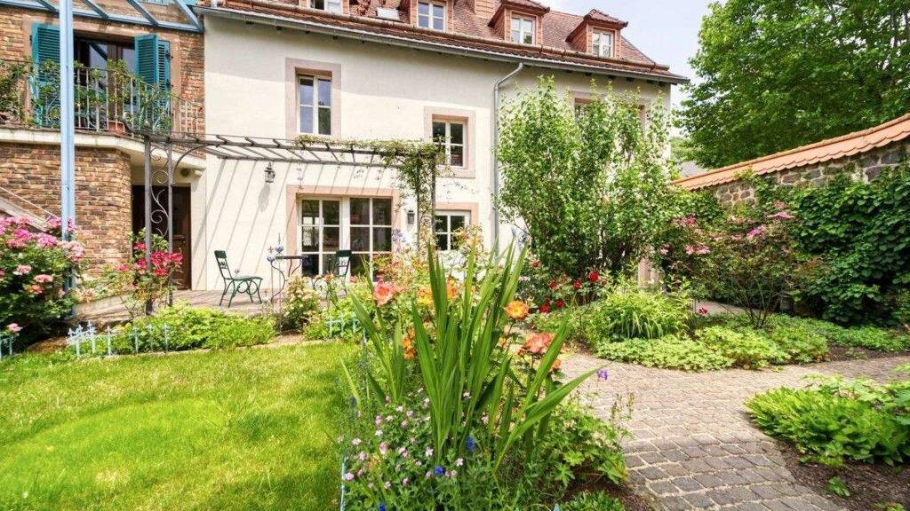 Der wunderschöne kleine Garten ist eine wahre Oase der Ruhe und lädt zum Verweilen ein. Genießen Sie die idyllische Atmosphäre und die Möglichkeit, im Freien zu entspannen oder zu gärtnern. Besonders wird der spezielle und außergewöhnliche Charme dieses Anwesens durch das kleine Fachwerkhaus im Garten unterstrichen. Dieses kleine Häuschen war ganz früher ein Ziegenstall. Heute dient dieses zur Unterbringung von Gartengeräten. Das obere Stockwerk kann auch als Atelier Verwendung finden. Der Garten wird von einer ganz bezaubernden Mauer umrahmt, die bereits beim Betreten des wunderschönen Gartens und auf den allerersten Blick ein wohliges Gefühl von Schutz und Privatsphäre bietet.