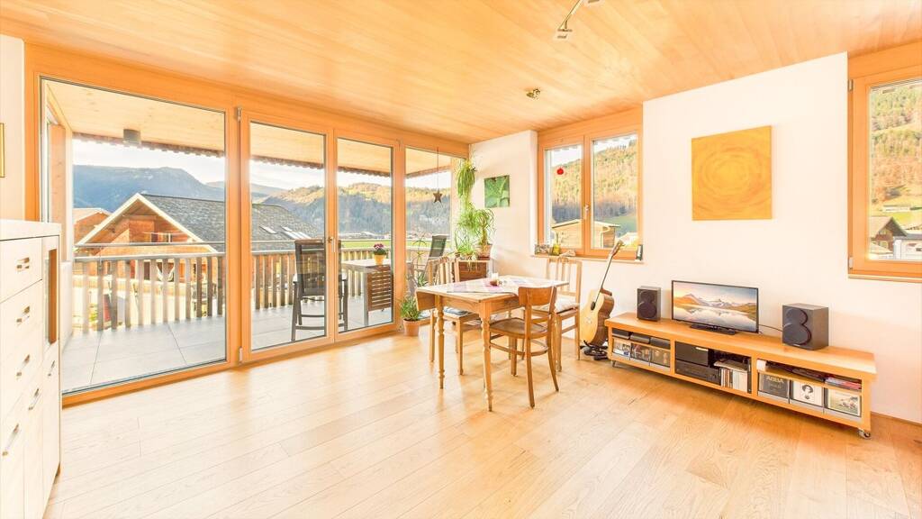 Ein traditionelles Element aus dem Bregenzerwald rundet dieses Angebot ab. In der Decke befindet sich ein sogenanntes Karfreitagsei, das als Symbol für Schutz und Glück gilt und der Wohnung eine besondere Note verleiht.