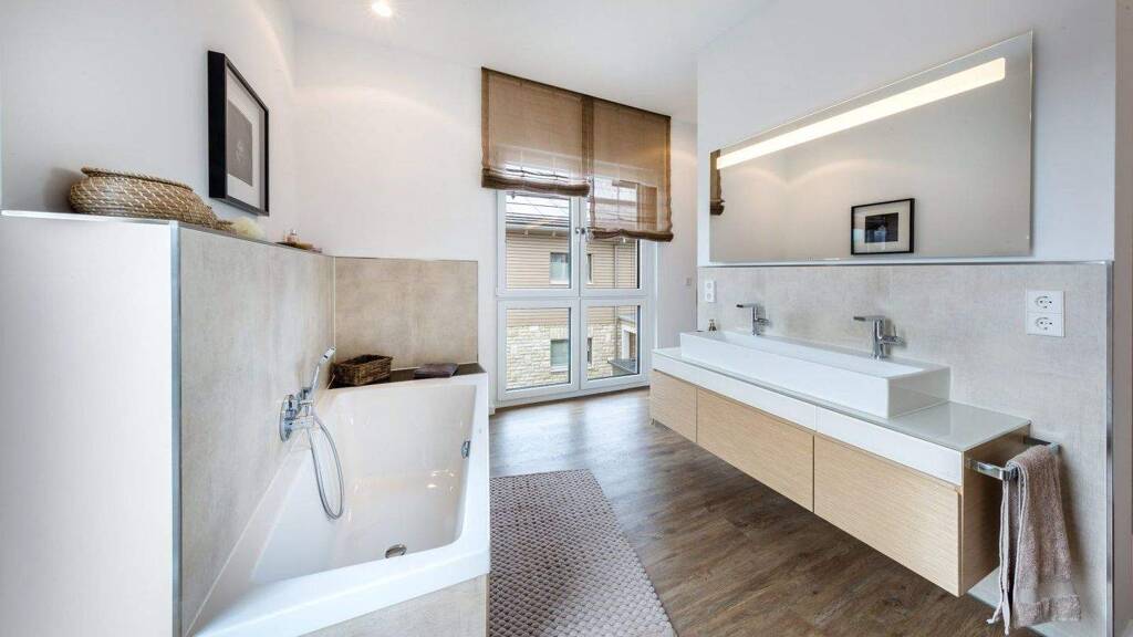 Neben den Leistungen der "technikfertigen" Ausbaustufe beinhaltet diese Option die Verlegung von Boden- und Wandfliesen, die Installation von Innentüren und Türzargen, Innenfensterbänken sowie aller sanitären Einrichtungen. Sie haben die Möglichkeit, Ihre kreative Seite auszuleben und Ihr Haus nach Ihren individuellen Vorstellungen zu gestalten. Malerarbeiten und Fußbodenverlegung können Sie selbst übernehmen oder mit qualifizierten Fachleuten zusammenarbeiten. Mit dieser Option können Sie Geld sparen und dennoch Ihre persönliche Note einbringen.